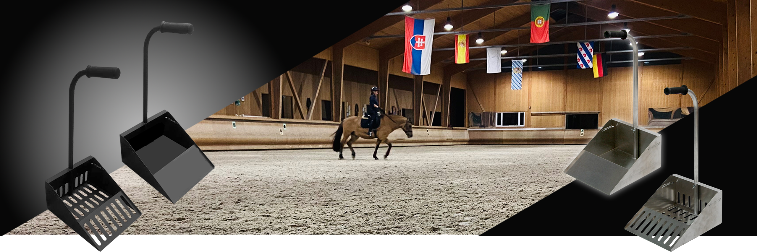 Unser innovativer Stall- und Hallenhelfer entstand aus jahrelanger Erfahrung mit den Unzulänglichkeiten und Nachteilen der meisten bisher verfügbaren Schaufeln.